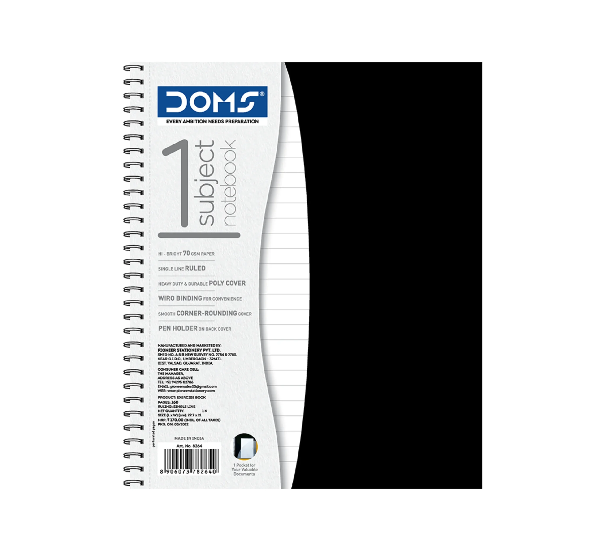 DOMS Polycover 1 Subject Wiro Notebook – 21.6x14Cm